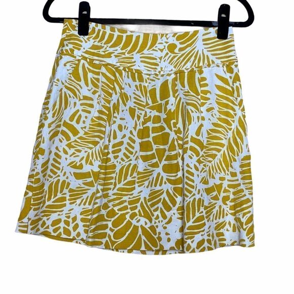 Ann Taylor Loft Yellow & White Leaf Linen Skirt