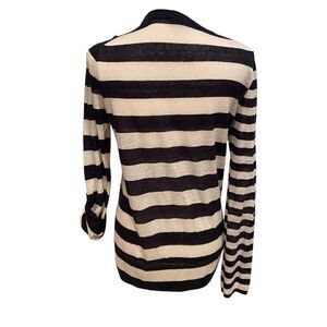 Ann Taylor Long Sleeve Stripe Linen Cardigan Button Up Sleeves M