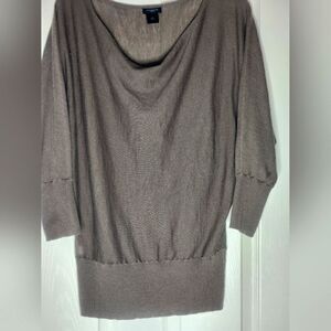 Ann Taylor M Fossil Gray WOOL Blend 3/4 Sleeves Cowl Neck Women's Sweater