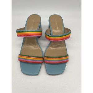 Ann Taylor Machelle Women Leather Rainbow Block Heel Sandal Size 5 M