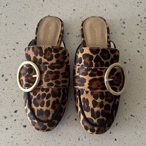 Step out in style with these chic Ann Taylor loafers, mules, Featuring a bold leopard print, these shoes add a touch of wild elegance to any outfit. Perfect for both casual and formal occasions.