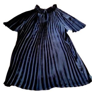 Ann Taylor Navy Silky Blouse | Accordion Pleat Short Sleeve | NWT | XXS Fits M/L