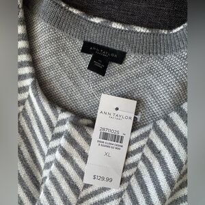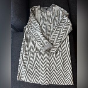 Ann Taylor Open Front Chevron Cardigan – Gray & White – Size XL – NWT
