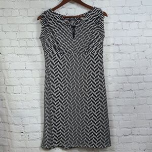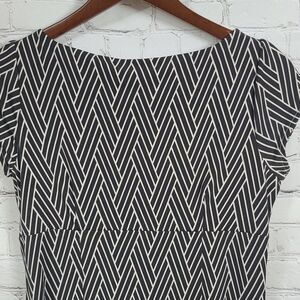 Ann Taylor Petite Brown Weave Print Jersey Dress Knot Keyhole Cap Sleeve 8P