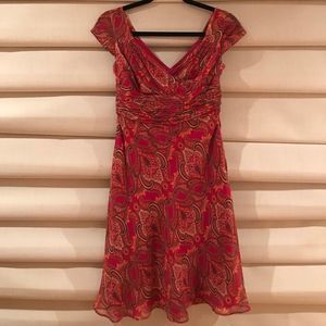 Ann Taylor Size 0 Petite Red Floral Print Dress . made in Philippines. Like Brand New Condition.