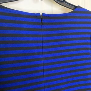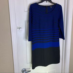 Ann Taylor Petite Medium Long Sleeve Blue Black Striped Shift Dress