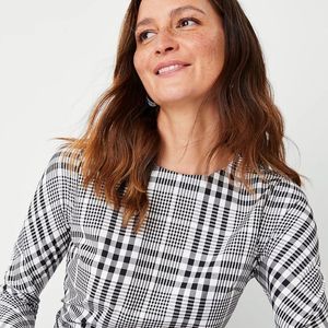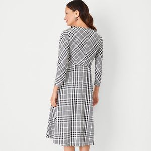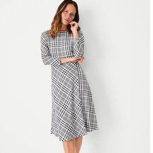 Ann Taylor Petite Size 0P Black White Checkered Long Sleeved Plaid Midi Dress
