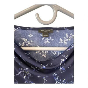 Ann Taylor Petite Small Navy Floral Cowl Neck Short Sleeved Blouse
