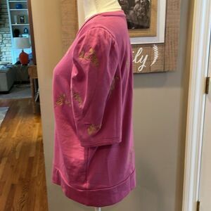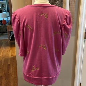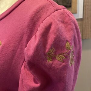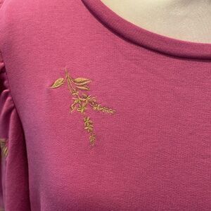 Ann Taylor Purple and Tan Embroidered Floral Puff Sleeve Sweatshirt