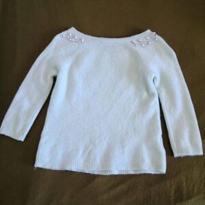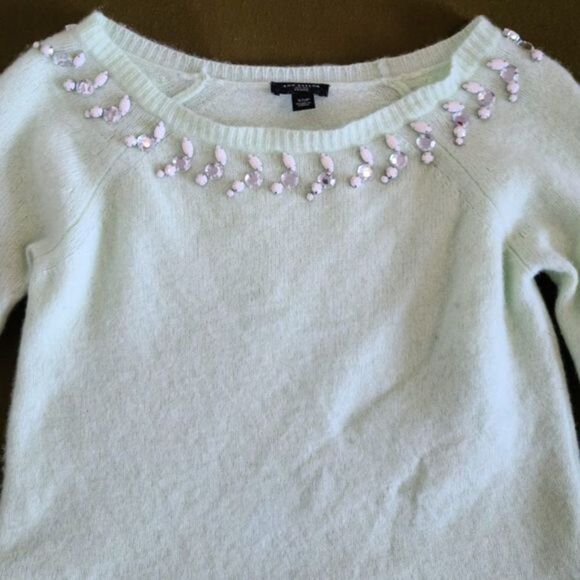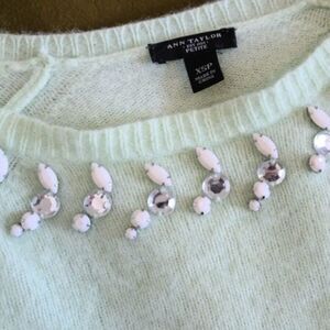 Ann Taylor Rhinestone Beaded Mint Green Sweater