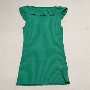 This elegant Ann Taylor tank top features a vibrant green hue with a sleeveless design, perfect for warm weather. The ribbed texture adds a touch of sophistication, while the ruffled neckline elevates its style, making it ideal for both casual and dressy occasions.