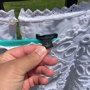 Gorgeous Ann Taylor scalloped eyelet cotton dress. Never been worn; with tags attached. Lined. 100% cotton. Beautiful scalloping detail. Pullover style. Perfect for summer!