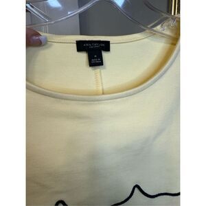 Ann Taylor Sleeveless Scalloped Tier Shirt Butter Yellow W/Navy Piping Sz. M
