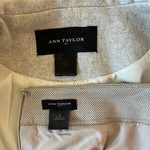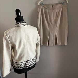 Ann Taylor Suit Linen Cotton Blazer and Skirt Open Front Embroidery Sz.4-6