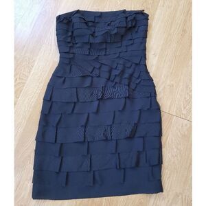 Ann Taylor Tiered Ruffle Sheath Strapless Cocktail Dress - size 0 in Black