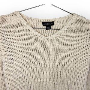 Ann Taylor Womens Sweater Sz Large Cotton Ivory Long Sleeves Year Round Pullover