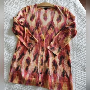 Ann Taylor silk and linen print 3/4 sleeve cardigan sweater