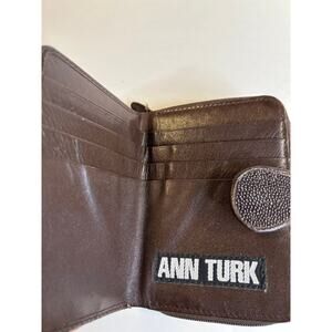 Ann Turk Wallet Stingray Genuine Leather bifold brown white