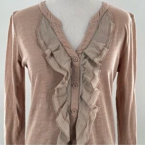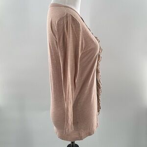 Ann Tylor loft womens top size S pink mauve split v-neck button down ruffle 3/4 sleeve