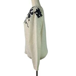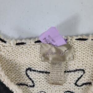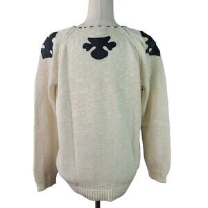 Ann Wi Cream Black Leather Applique V Neck Sweater Medium
