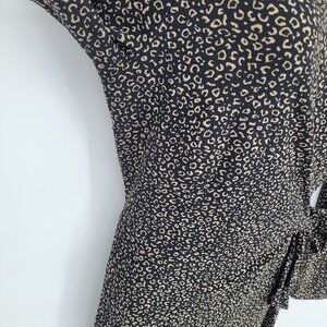 Ann taylor 10 petite brown black leopard print full wrap long sleeve midi dress