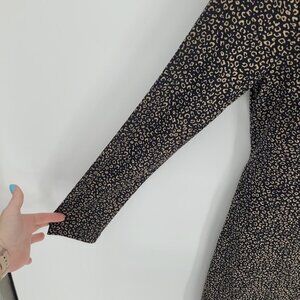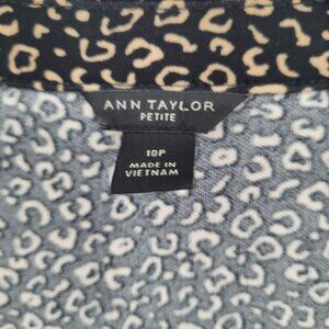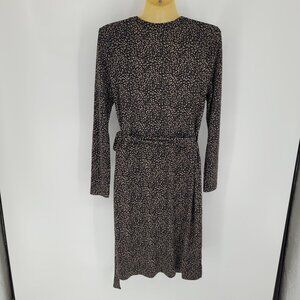 Ann taylor 10 petite brown black leopard print full wrap long sleeve midi dress stretch Good Preowned Condition May show normal wash wear color may appear differently depending on light