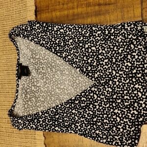 Ann Taylor 3/4 Sleeve Wrap Top, Black & White Little Flower Print, Size XS.