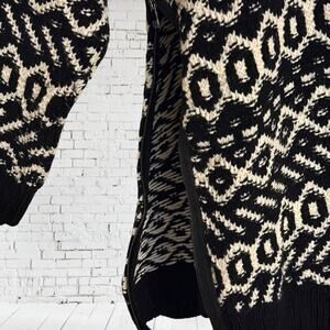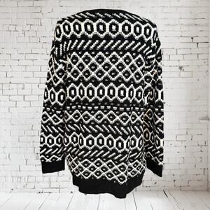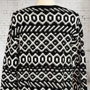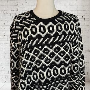 Ann taylor Black White Tunic Sweater Sz XL Wool Blend Geo Aztec Graphic Knit