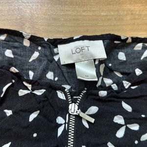 Ann taylor loft black and white floral blouse size medium with zipper detailing