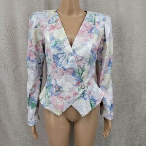 Ann Hobbs Vintage 80s Pastel Floral Tapestry Hourglass Peplum Blazer