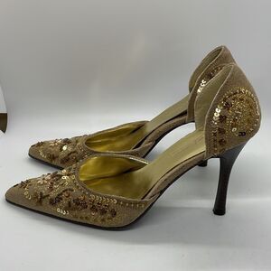 EUC Size 7 Ann Michelle Suede with Beads and Sequin High Heels