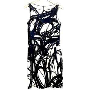 Ann Taylor 100% Silk Abstract Print Sheath Dress Black Ivory Size 6