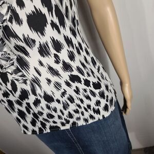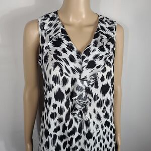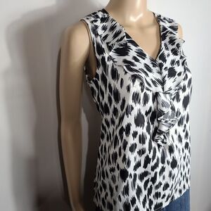 Ann Taylor Animal Print Ruffle Neck Silk Top