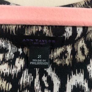 Ann Taylor Black Cream Animal Print Tank Dress Ruched Top Sleeveless Size 2