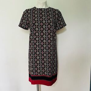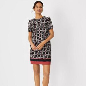 Ann Taylor Black Multicolor Geometric printed shift dress