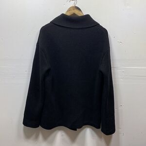 Black chunky waffle knit collared cardigan from Ann Taylor. Buttons under collar. Size large.