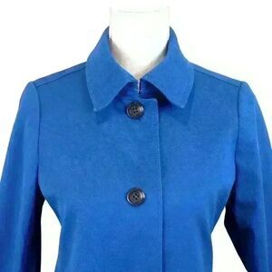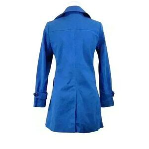 Ann Taylor Cobalt Blue Canvas Car Coat Button Front Cuffs Collar Size XS Petite