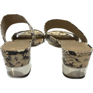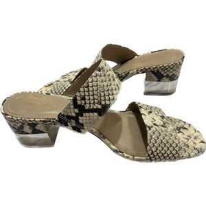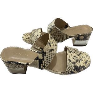 Ann Taylor Cream Black Faux Snakeskin Block Heel Slides Sandals Women SZ 7.5