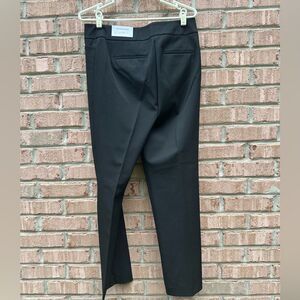These black trousers from Ann Taylor Factory offer a sleek, tailored fit perfect for professional settings. Crafted with a structured fabric, they feature a flat-front design and a pressed crease for a polished look. Ideal for pairing with blazers or dress shirts, these trousers are a versatile addition to any wardrobe.
