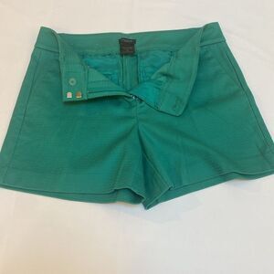These high waist shorts from Ann Taylor Factory feature a vibrant green hue and a tailored, structured design. Made from a sturdy cotton blend, they offer a clean, classic cut with a slightly fitted silhouette, perfect for adding a pop of color to your wardrobe.