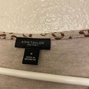 Ann Taylor Factory leopard print knit blouse top ruffled 3/4 sleeves crew neck M