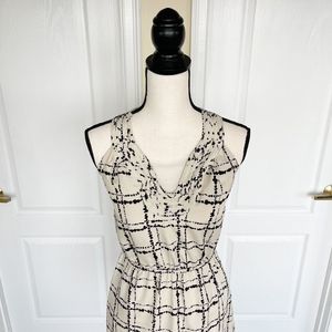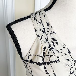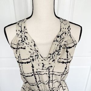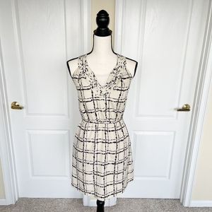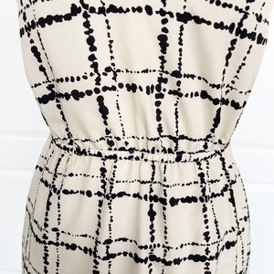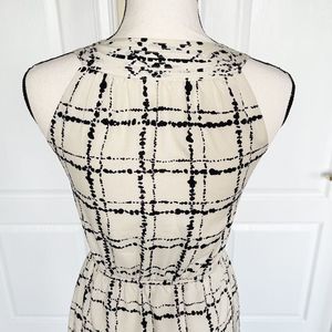 Ann Taylor LOFT 0P Petite Unique Neckline Dalmatian Plaid Black Crème Contrast B