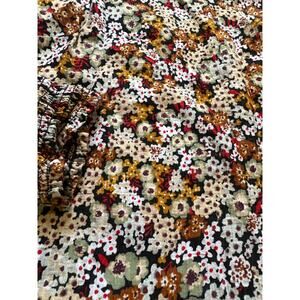 AnnTaylor LOFT Puffed Shoulder Floral Smocked Cuff Blouse Top Size X-Small Black