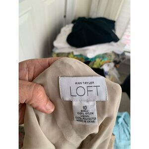 Ann Taylor LOFT Beige Sleeveless Lace Top Size 10 Sleeveless Lace Top Nude Cami underneath Dressy V neck Side zipper