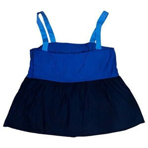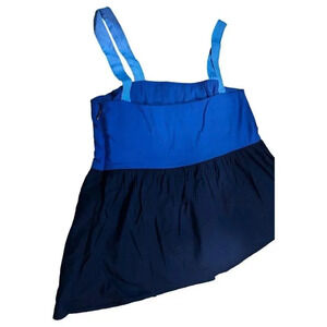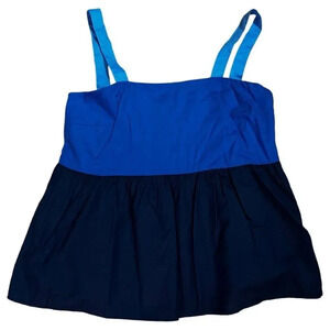 Ann Taylor LOFT Tank Top Blue Colorblock Wide Strap Side Zipper Peplum Size 0
