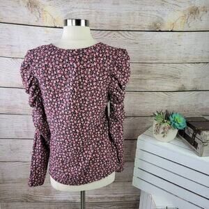 Ann Taylor LOFT Ditsy Floral Puff Sleeve Top Size Medium