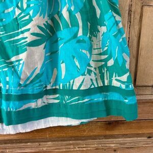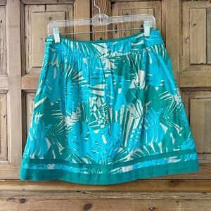 Ann Taylor LOFT Women's Size 2 Blue Green Cream Leaf Palm Print Skirt Lined