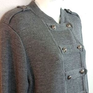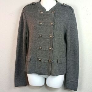 Ann Taylor LOFT Wool Blend Gray Blazer Military-Inspired Double-Breasted sz L