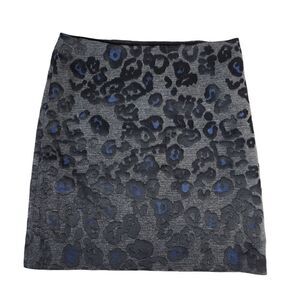 Ann Taylor Skirt Wool Blend Floral Brocade Black Charcoal Blue Floral