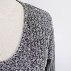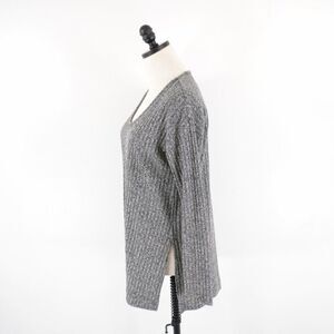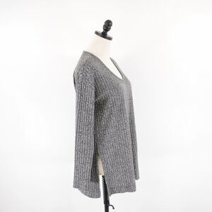 Ann Taylor Loft Gray Striped Medium Lightweight Sweater Scoop Neck Polyester